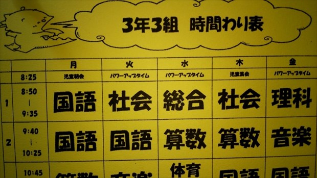 例えば、月曜日の時間割りが、「1限・国語、2限・算数、3限・音楽」だとします。